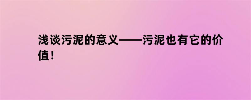 浅谈污泥的意义——污泥也有它的价值! 污泥是生活垃圾经过处理之后,所剩下的一种物质,其主要成分是有机质以及不易分解的杂质等。在日常生活中,人们往往对污泥并不关注,认为它是一种无用的废弃物。但是,事实上,污泥也有着它的价值,进一步探讨污泥的意义,有以下几个方面。