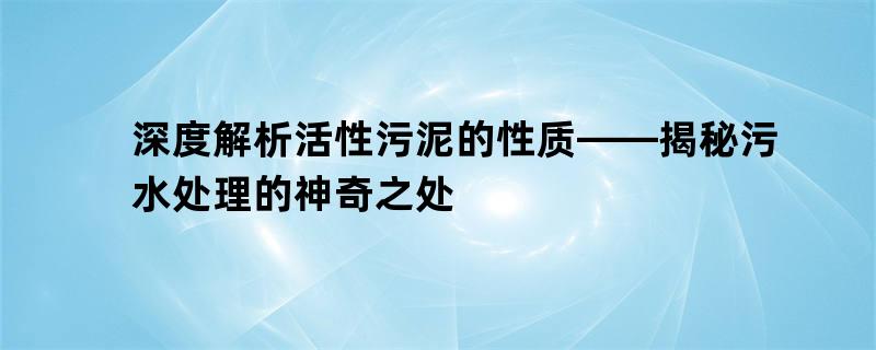 深度解析活性污泥的性质——揭秘污水处理的神奇之处 随着城市化进程的不断加速,城市污水处理问题成为了人们日常生活中不得不面对的一个问题。而活性污泥作为一种常见的生物质在污水处理中有着不可替代的作用。