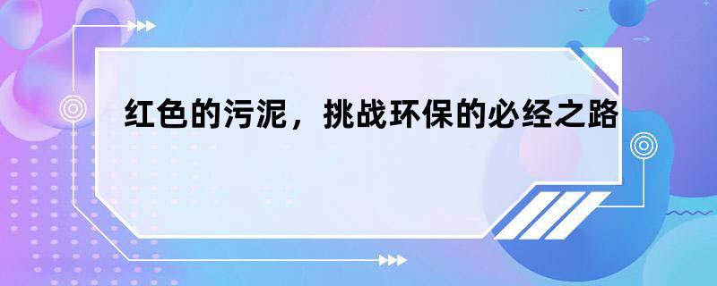 红色的污泥,挑战环保的必经之路 随着工业化进程的加快和城市化的不断扩张,红色的污泥逐渐成为中国环保领域中不容忽视的问题。红色的污泥产生于钢铁、冶金、化工等行业生产过程中,包含大量的重金属和污染物,对环境和人体健康造成严重威胁。