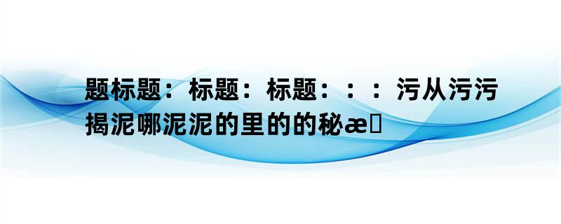 题标题:标题:标题:::污从污污揭泥哪泥泥的里的的秘来源来来源来源与的及及处理污其其方法污 标题标题标题:标题:标题:::污从污污揭泥哪泥泥的里的的秘来源来来源来源与的及及处理污其其方法污