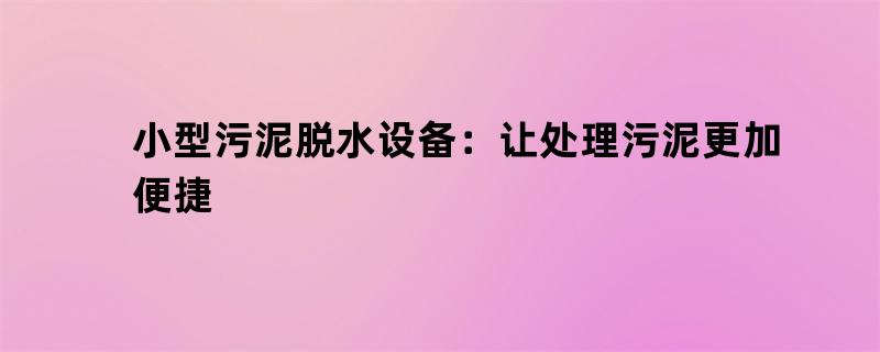 小型污泥脱水设备:让处理污泥更加便捷 随着工业化进程的不断加快,污水处理成为了一个亟待解决的问题。其中,污泥脱水作为处理污水的重要环节之一,其效果直接关系到污水处理的成效和效率。早期的污泥脱水设备体积庞大、结构复杂,不仅占用大量的空间,而且操作繁琐、费时费力,严重影响了污水处理的效率。但是,随着科技的不断进步,小型污泥脱水设备应运而生,成为了一种处理污泥的新型选择。