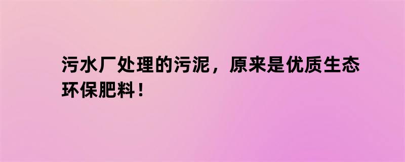 污水厂处理的污泥,原来是优质生态环保肥料!