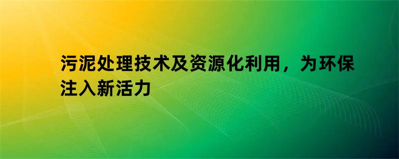 污泥处理技术及资源化利用,为环保注入新活力