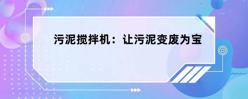 污泥搅拌机:让污泥变废为宝