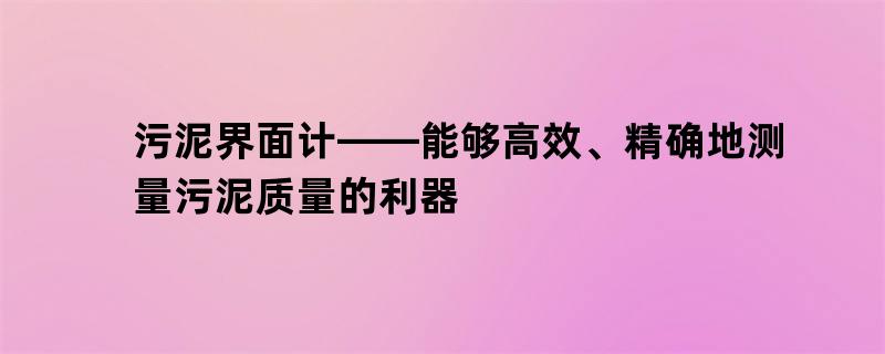 污泥界面计——能够高效、精确地测量污泥质量的利器