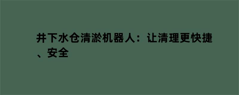在建筑、工业、农业等各个行业,因为生产过程和运营需求,都需要用到一些井下水仓,在操作期间经常需要对这些水仓进行清理,彻底排除底部淤积的废料或污水泥浆。但是,这种清理工作存在很多安全隐患,因为操作人员必须亲身进入井下水仓进行清理,这样的操作如果发生意外,就会对人员的生命安全产生威胁。