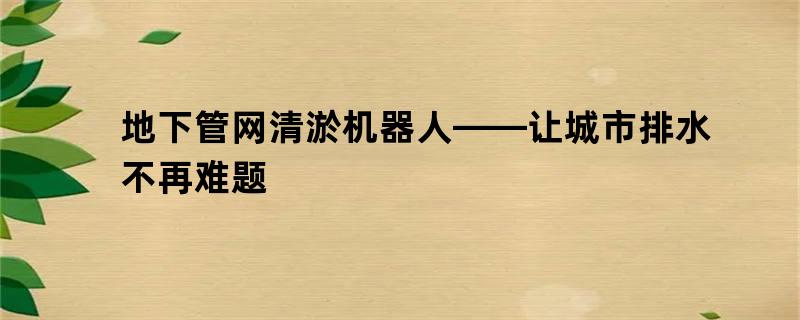 地下管网清淤机器人——让城市排水不再难题