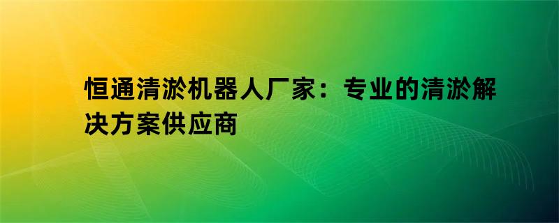 恒通清淤机器人厂家:专业的清淤解决方案供应商