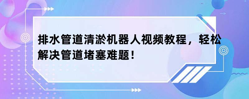 排水管道清淤机器人视频教程,轻松解决管道堵塞难题!