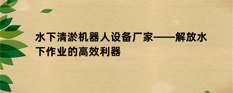 水下清淤机器人设备厂家——解放水下作业的高效利器
