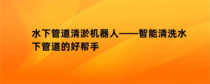 水下管道清淤机器人——智能清洗水下管道的好帮手