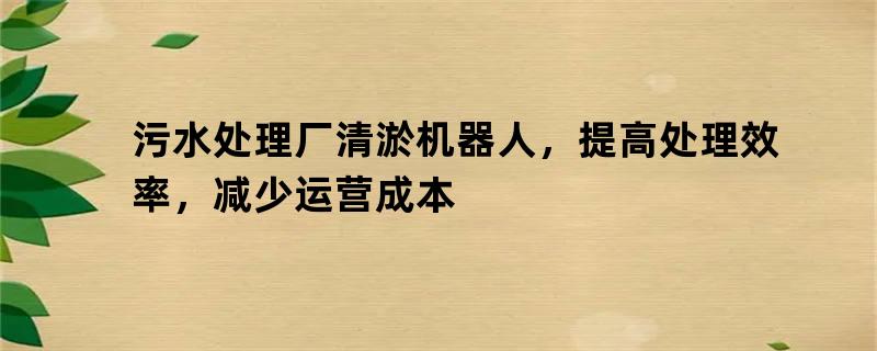 污水处理厂清淤机器人,提高处理效率,减少运营成本