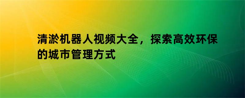 清淤机器人视频大全,探索高效环保的城市管理方式