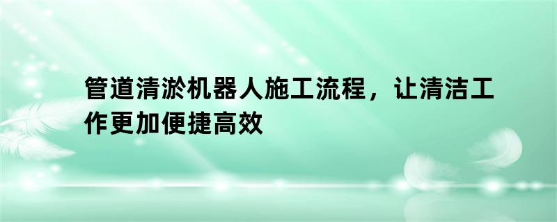 管道清淤机器人施工流程,让清洁工作更加便捷高效
