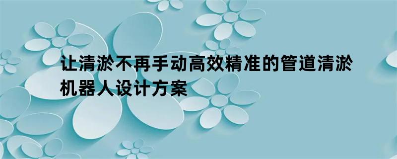 让清淤不再手动 高效精准的管道清淤机器人设计方案