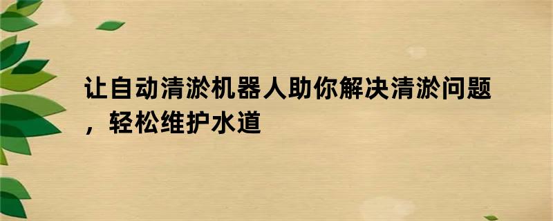让自动清淤机器人助你解决清淤问题,轻松维护水道