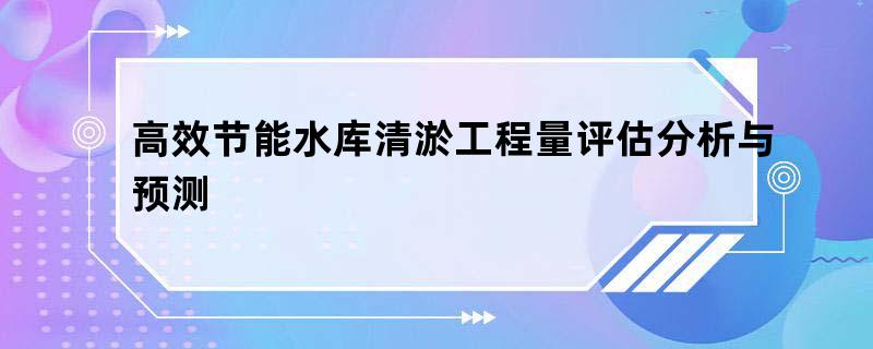 高效节能水库清淤工程量评估分析与预测