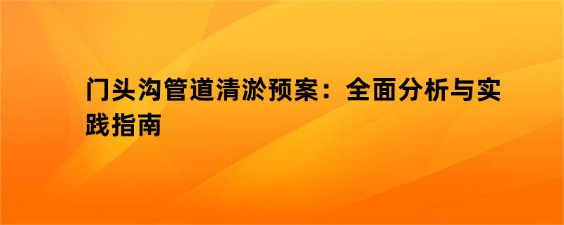 门头沟管道清淤预案:全面分析与实践指南