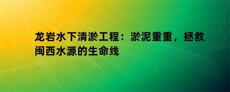 龙岩水下清淤工程:淤泥重重,拯救闽西水源的生命线
