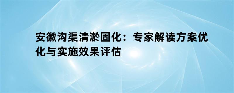 安徽沟渠清淤固化:专家解读方案优化与实施效果评估