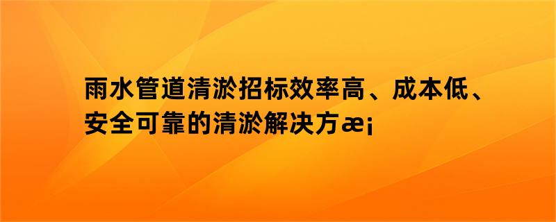 雨水管道清淤招标 | 效率高、成本低、安全可靠的清淤解决方案