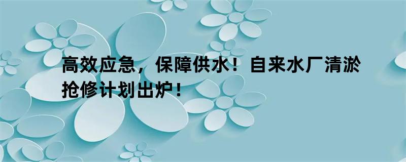 高效应急,保障供水!自来水厂清淤抢修计划出炉!