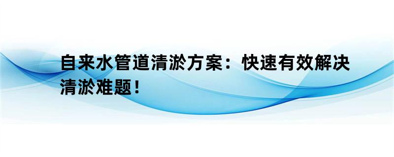 自来水管道清淤方案:快速有效解决清淤难题!