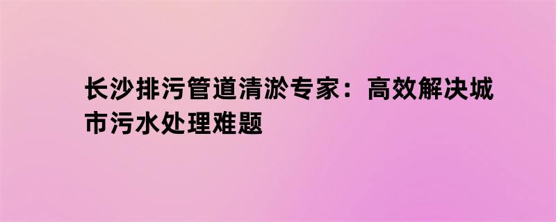 长沙排污管道清淤专家:高效解决城市污水处理难题
