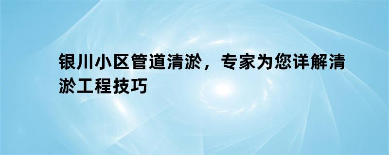 银川小区管道清淤,专家为您详解清淤工程技巧