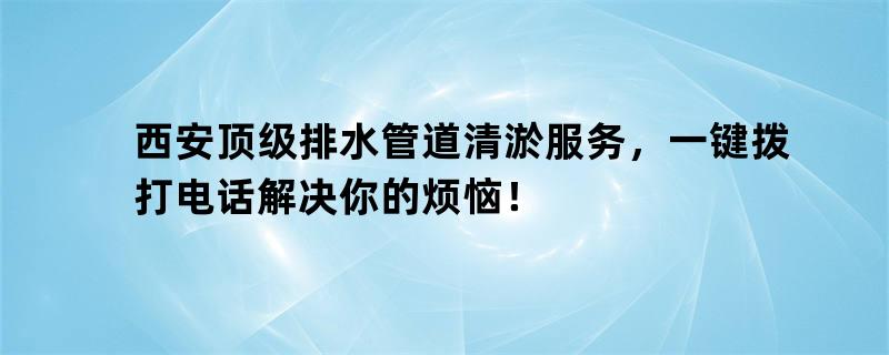 西安顶级排水管道清淤服务为你提供一键拨打电话解决烦恼。本文将详细介绍西安顶级排水管道清淤服务的优势和专业性,并为读者提供背景信息。