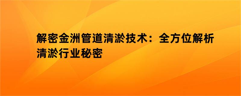 解密金洲管道清淤技术:全方位解析清淤行业秘密