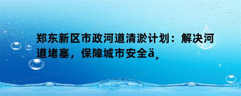郑东新区市政河道清淤计划:解决河道堵塞,保障城市安全与发展