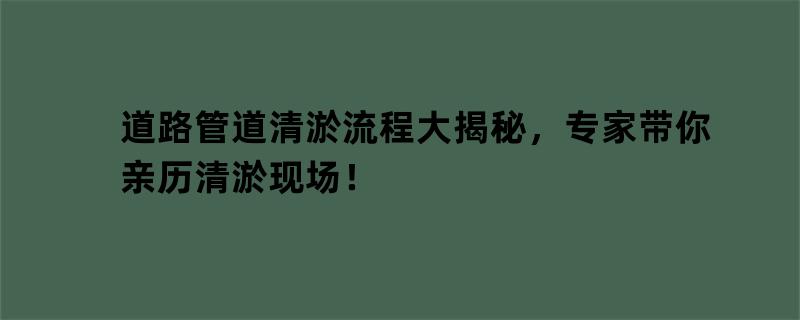 道路管道清淤流程大揭秘,专家带你亲历清淤现场!