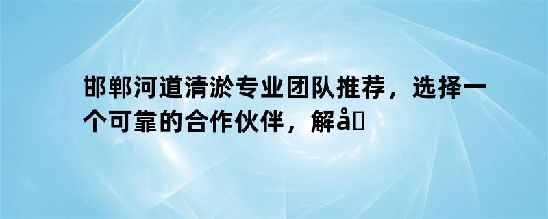 邯郸河道清淤专业团队推荐,选择一个可靠的合作伙伴,解决你的河道清淤难题