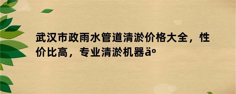 本文将详细介绍武汉市政雨水管道清淤价格大全,重点介绍具有高性价比的专业清淤机器人,并为读者提供背景信息,引起读者的兴趣。