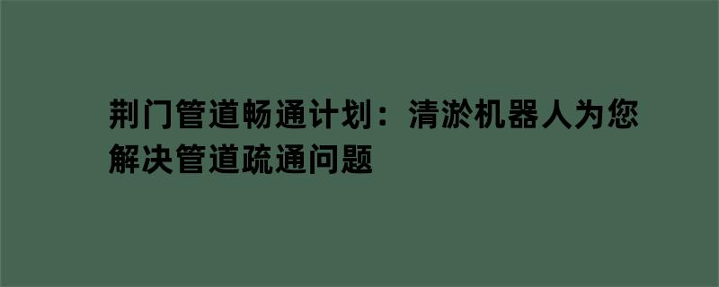 荆门管道畅通计划:清淤机器人为您解决管道疏通问题