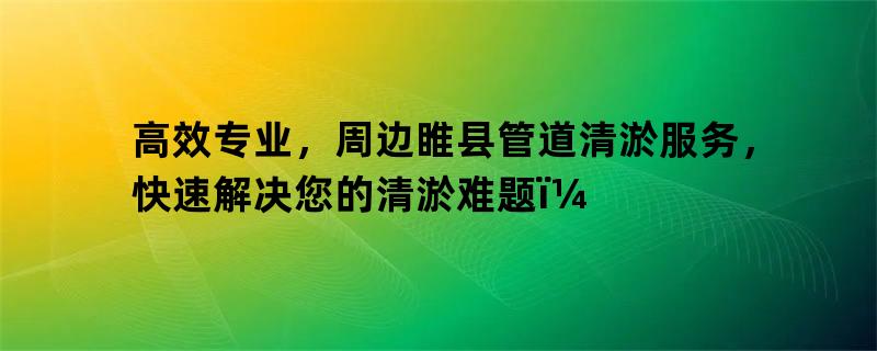 高效专业,周边睢县管道清淤服务,快速解决您的清淤难题!