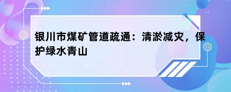 银川市煤矿管道疏通:清淤减灾,保护绿水青山