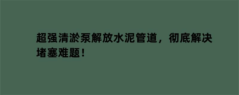 超强清淤泵解放水泥管道,彻底解决堵塞难题!