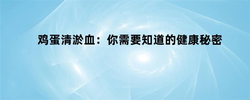 随着生活水平的提高,人们越来越关注健康问题,其中血液循环问题一直是一个备受关注的话题。而鸡蛋清由于其含有丰富的蛋白质和氨基酸等成分,被广泛认为是一种可以帮助清淤血液的营养食品。本文将介绍鸡蛋清淤血:你需要知道的健康秘密,为大家详细解析鸡蛋清如何帮助淤血问题以及相关注意事项。