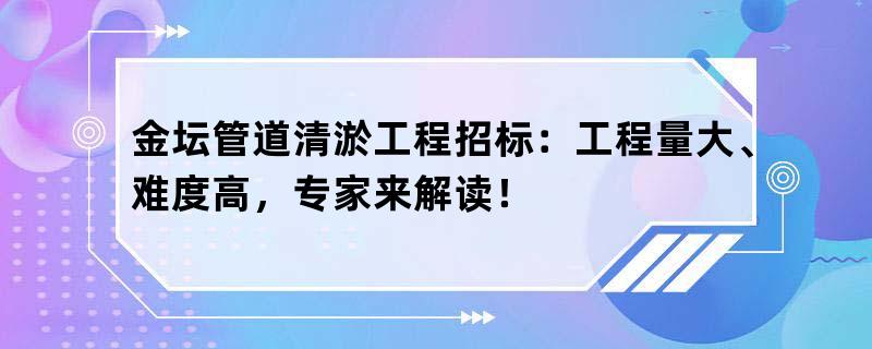 金坛管道清淤工程招标:工程量大、难度高,专家来解读!