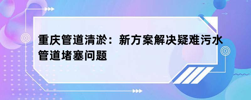 随着城市发展和人口增长,污水管道的堵塞问题日益严重。重庆作为一个具有重要经济地位的城市,其污水管道清淤问题一直备受关注。本文将介绍一种新的管道清淤方案,旨在解决疑难污水管道堵塞问题,提高城市排水能力,改善环境质量。