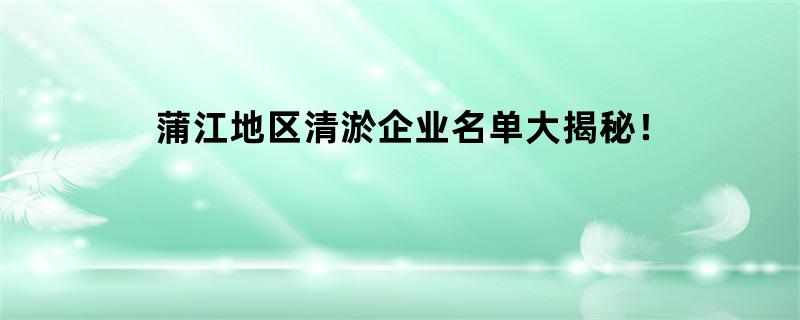 蒲江地区清淤企业名单大揭秘!