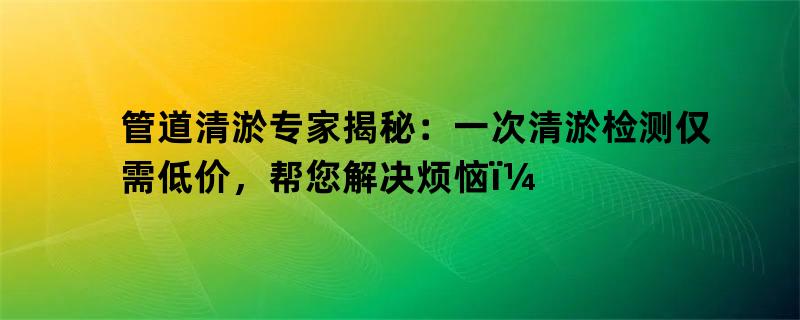 一、管道清淤专家揭秘:一次清淤检测仅需低价!