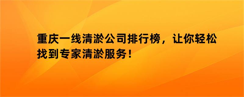 重庆一线清淤公司排行榜,让你轻松找到专家清淤服务!