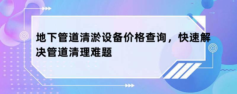 地下管道清淤设备价格查询,快速解决管道清理难题