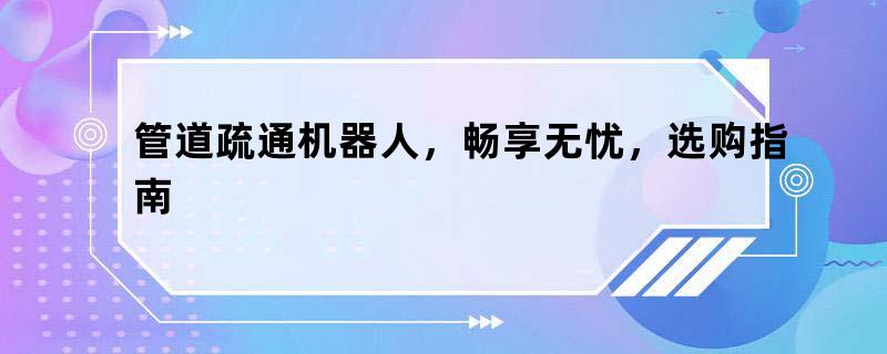 管道疏通机器人,畅享无忧,选购指南