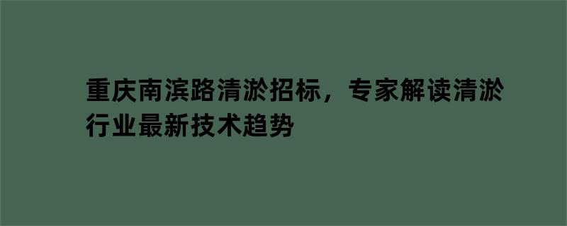 重庆南滨路清淤招标,专家解读清淤行业最新技术趋势