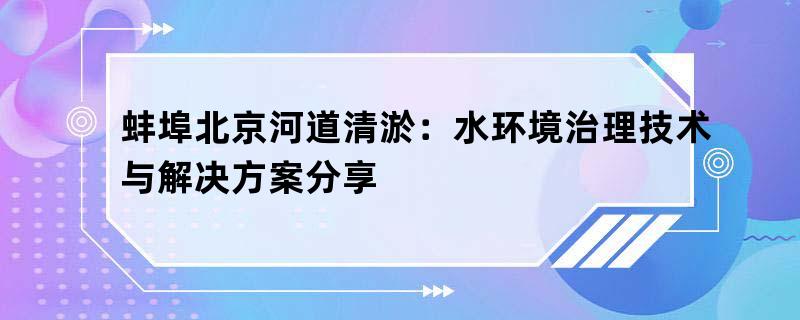 蚌埠北京河道清淤:水环境治理技术与解决方案分享