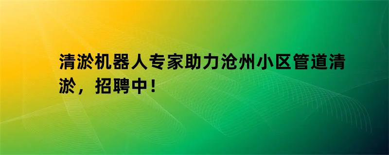 清淤机器人专家助力沧州小区管道清淤,招聘中!